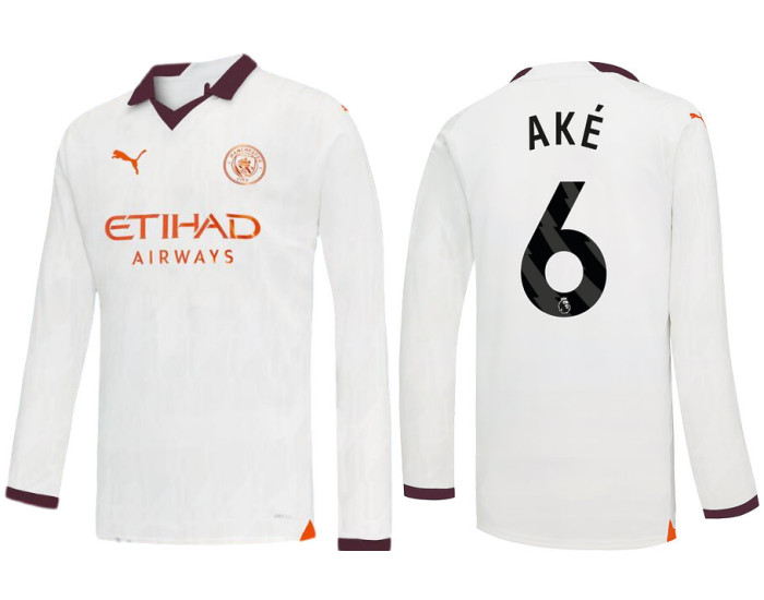 Look and feel like the real deal when you add 2023-24 Manchester City 6 Nathan Ake Away White Long Sleeve Jersey to your Manchester City collection. This adidas gear features AEROREADY technology and ventilated, that work together to keep you dry and comfortable all game long. Its exciting Manchester City graphics will motivate you to cheer on your favorite team as they take the pitch.