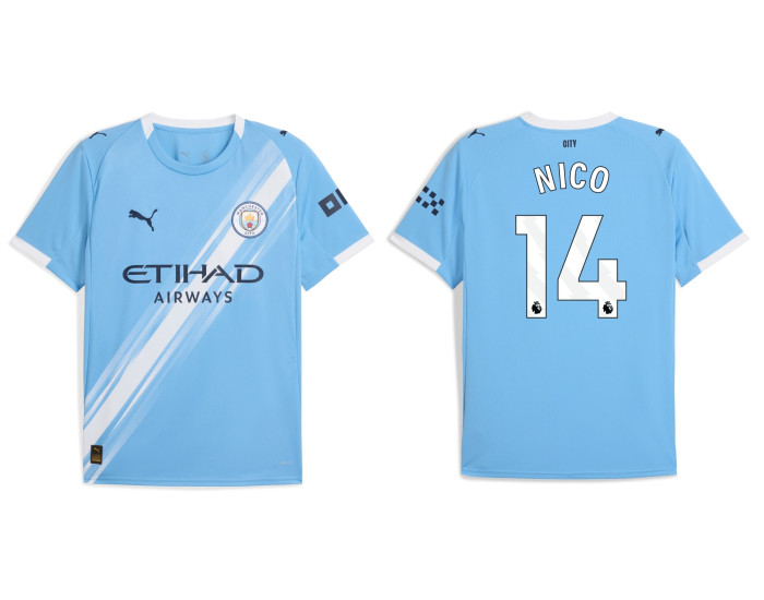 As an official Manchester City jersey from the 2025-2026 season, it features the unmistakable club crest and design details that every supporter recognizes. Wearing the number 14 associated with his legendary status, this kit is a must-have for any fan paying tribute to Nico Gonzalez's immense contributions and class in the heart of City's midfield.