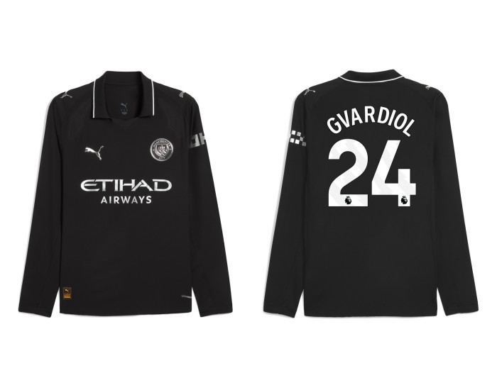 Experience the thrill of speed and skill with the 2025-2026 Manchester City 24. Josko Gvardiol Authentic Black Away Long Sleeve Jersey. This kit captures the essence of one of soccer's most exciting wingers, designed for fans who appreciate explosive talent and modern style.