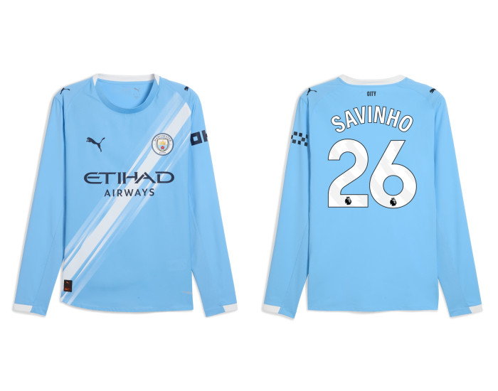 Celebrate the legacy of a true midfield maestro with this 2025-2026 Manchester City 26. Savinho Authentic Blue Home Long Sleeve Jersey. This iconic blue shirt allows you to honor the captain who lifted the trophy during an unforgettable chapter of the club's history.
