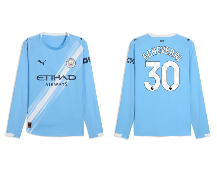 Celebrate the legacy of a true midfield maestro with this 2025-2026 Manchester City 30. Claudio Echeverri Authentic Blue Home Long Sleeve Jersey. This iconic blue shirt allows you to honor the captain who lifted the trophy during an unforgettable chapter of the club's history.