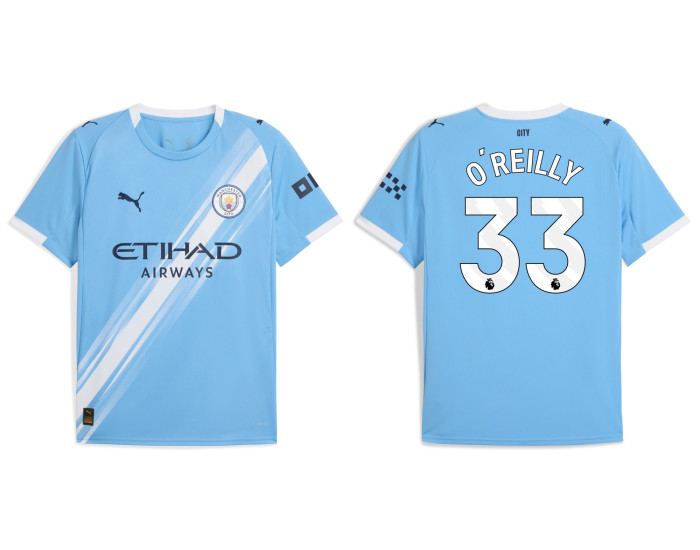As an official Manchester City jersey from the 2025-2026 season, it features the unmistakable club crest and design details that every supporter recognizes. Wearing the number 33 associated with his legendary status, this kit is a must-have for any fan paying tribute to Nico O'Reilly's immense contributions and class in the heart of City's midfield.