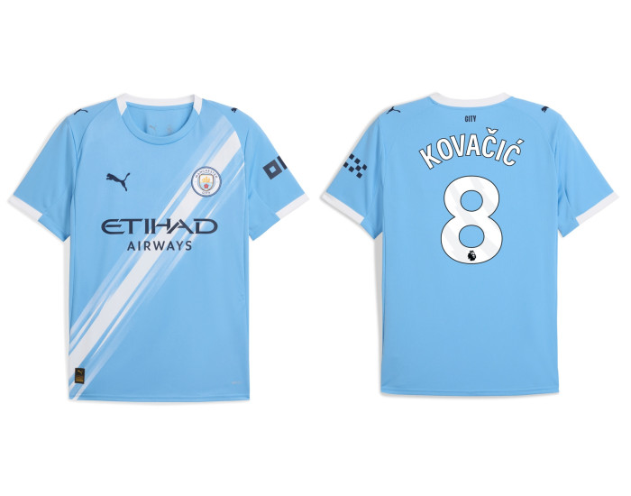 As an official Manchester City jersey from the 2025-2026 season, it features the unmistakable club crest and design details that every supporter recognizes. Wearing the number 8 associated with his legendary status, this kit is a must-have for any fan paying tribute to Mateo Kovacic's immense contributions and class in the heart of City's midfield.