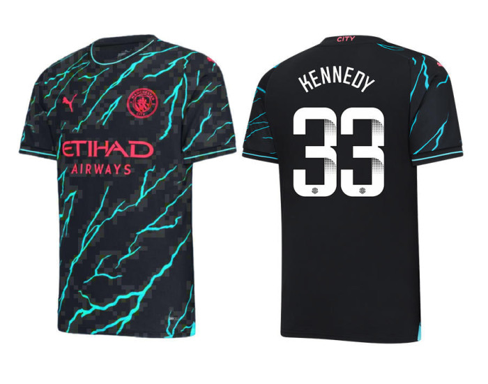 Not unlike a goalie making a diving save, this YOUTH 2023-24 Manchester City 33 Scott Carson Third Black Authentic Jersey will be a highlight in your collection of game day gear. Designed with adidas' AEROREADY technology to absorb moisture, this jersey is specifically constructed to keep you comfortable. The Manchester City graphics provide that on-pitch aesthetic that you love