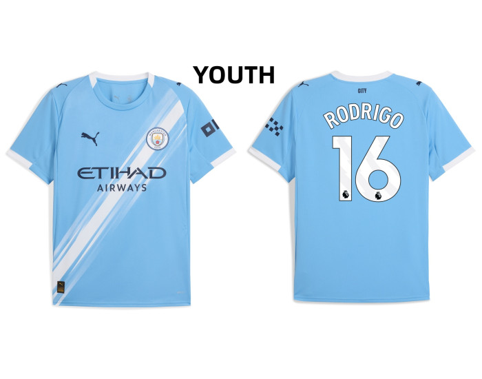 As an official Manchester City jersey from the 2025-2026 season, it features the unmistakable club crest and design details that every supporter recognizes. Wearing the number 16 associated with his legendary status, this kit is a must-have for any fan paying tribute to Rodrigo's immense contributions and class in the heart of City's midfield.