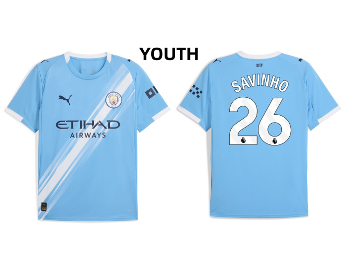 Celebrate the legacy of a true midfield maestro with this Youth 2025-2026 Manchester City 26. Savinho Authentic Blue Home Jersey. This iconic blue shirt allows you to honor the captain who lifted the trophy during an unforgettable chapter of the club's history.