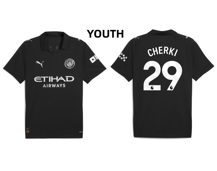 Experience the thrill of speed and skill with the Youth 2025-2026 Manchester City 29. Rayan Cherki Authentic Black Away Jersey. This kit captures the essence of one of soccer's most exciting wingers, designed for fans who appreciate explosive talent and modern style.
