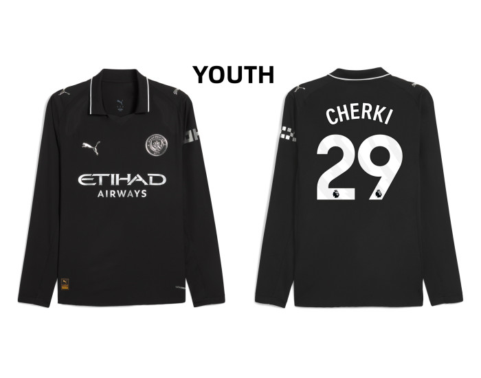 Experience the thrill of speed and skill with the Youth 2025-2026 Manchester City 29. Rayan Cherki Replica Black Away Long Sleeve Jersey. This kit captures the essence of one of soccer's most exciting wingers, designed for fans who appreciate explosive talent and modern style.