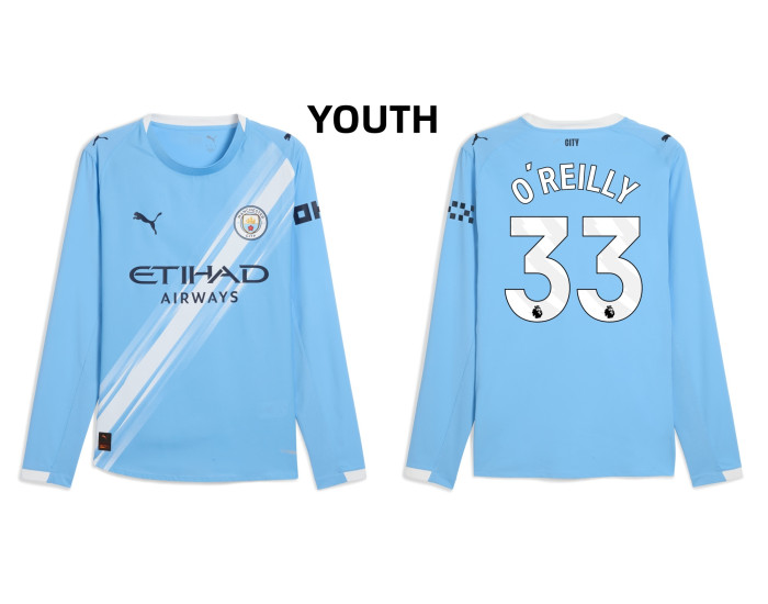 Celebrate the legacy of a true midfield maestro with this Youth 2025-2026 Manchester City 33. Nico O'Reilly Replica Blue Home Long Sleeve Jersey. This iconic blue shirt allows you to honor the captain who lifted the trophy during an unforgettable chapter of the club's history.