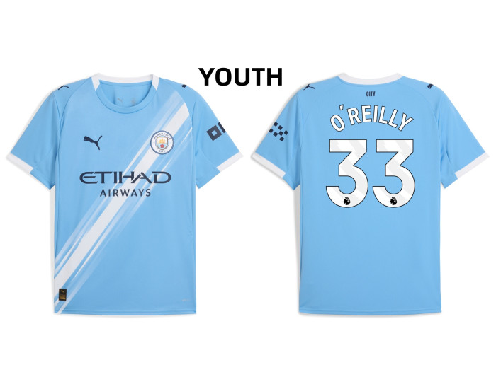 As an official Manchester City jersey from the 2025-2026 season, it features the unmistakable club crest and design details that every supporter recognizes. Wearing the number 33 associated with his legendary status, this kit is a must-have for any fan paying tribute to Nico O'Reilly's immense contributions and class in the heart of City's midfield.